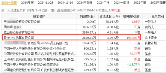 第三点,业绩方面,公司2024年营收263亿元,刷新历史新高,归母净利润9.5亿元;2025奶奶一季度营收62亿元,归母净利润2.56亿元,同比增长14%。最新前十大流通股东显示,一季度累计加仓即2亿股,公司实控人加仓近1.9亿股,北向资金重仓2800万股,加仓1900万股。