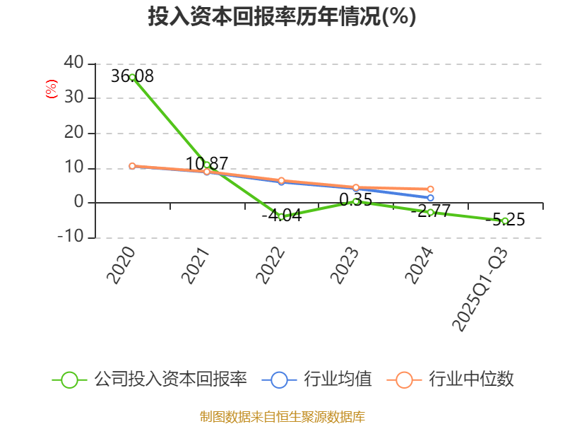 盈利能力方面, 2025年前三季度公司加权平均净资产收益率为-5.2%,同比下降4.87个百分点。公司2025年前三季度投入资本回报率为-5.25%,较上年同期下降4.43个百分点。