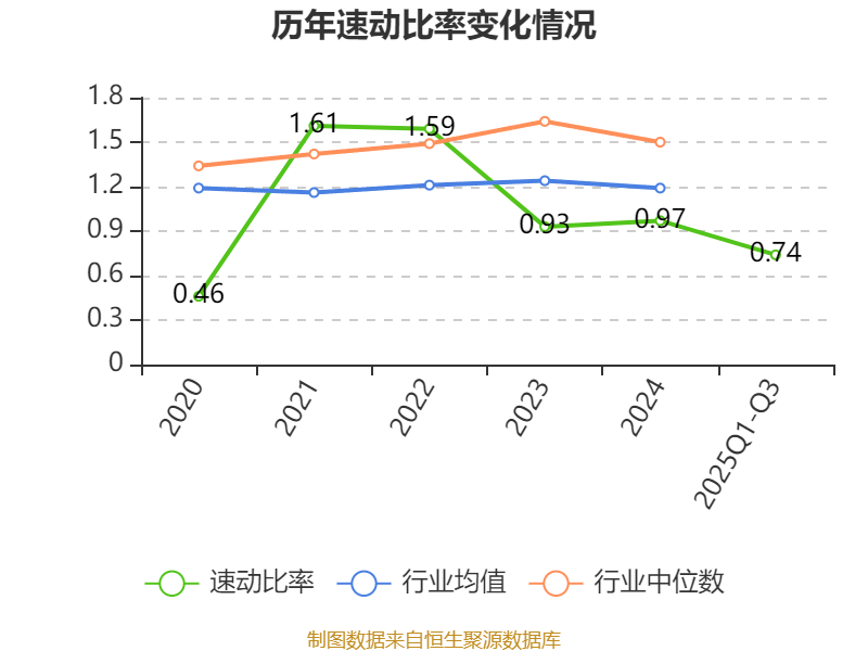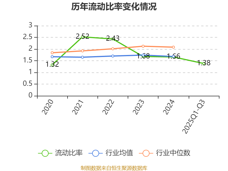 2025年前三季度,公司流动比率为1.38,速动比率为0.74。