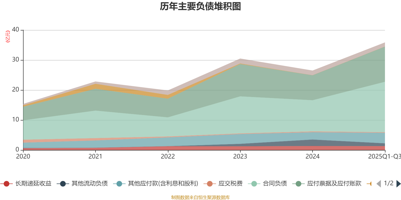 负债重大变化方面,截至2025年三季度末,公司合同负债较上年末增加61.6%,占公司总资产比重上升7.34个百分点;应付票据及应付账款较上年末增加41.06%,占公司总资产比重上升3.41个百分点;其他流动负债较上年末减少57.26%,占公司总资产比重下降2.16个百分点;其他应付款(含利息和股利)较上年末增加43.91%,占公司总资产比重上升1.1个百分点。